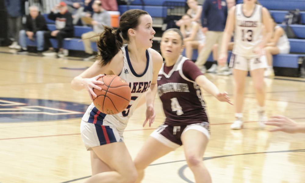 Lakers player Grace Schwartz eyes a lay-up. The next game for the Lakers will be on Jan. 13, against Dighton-Rehoboth Regional High School.