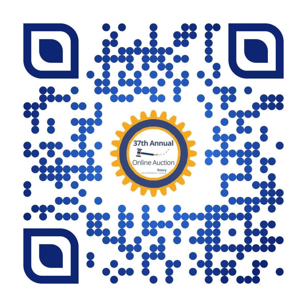 Scan the QR code, or go to https://new.biddingowl.com/middlebororotary to see what the club has and to register to begin bidding.