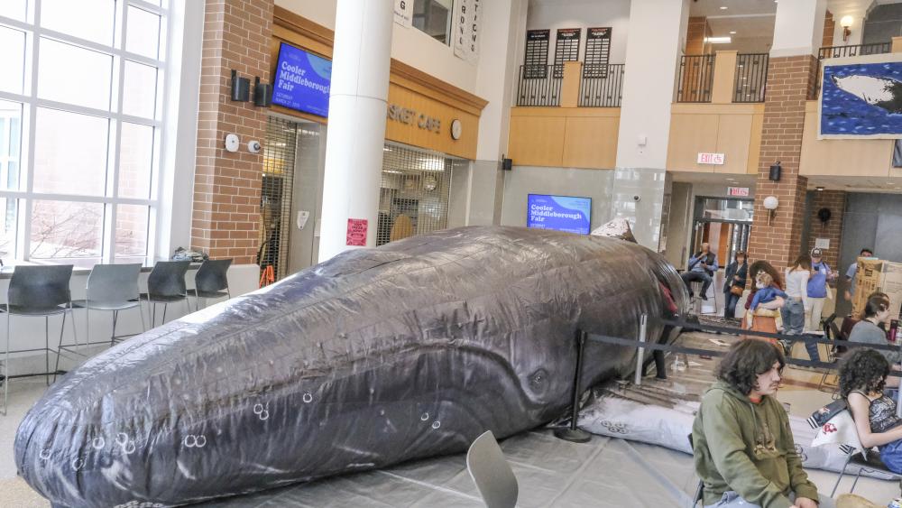 Another larger-than-life inflatable diorama was a large whale, which attendees could also explore inside of.