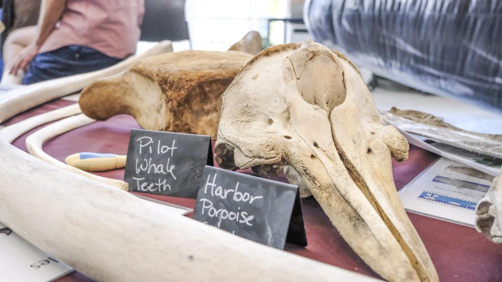 Bones from various whales are displayed at the New England Coastal Wildlife Association booth.