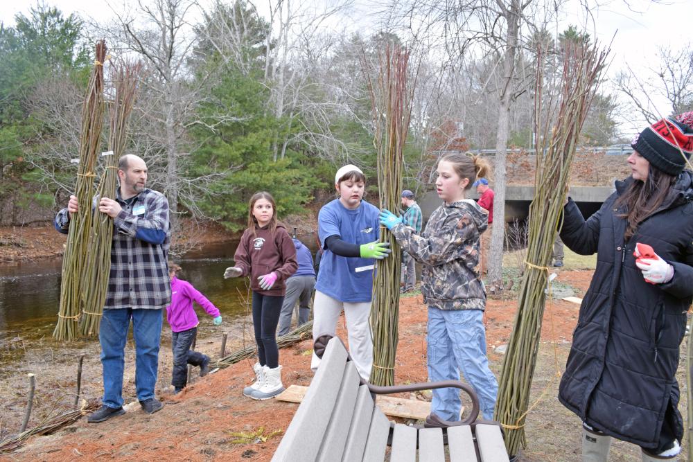 The living fence after having the whips woven in.MIDDLEBORO — The Nemasket River got a makeover on Saturday, March 14 when volunteers from around town came to help construct a ‘living fence’ made from willows.