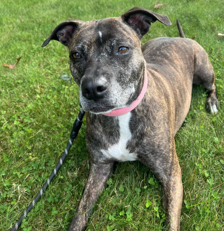 Terri is a six-year-old terrier/pit mix that is good with new people and kids and needs to be an only dog. Photo source: Town of Middleboro