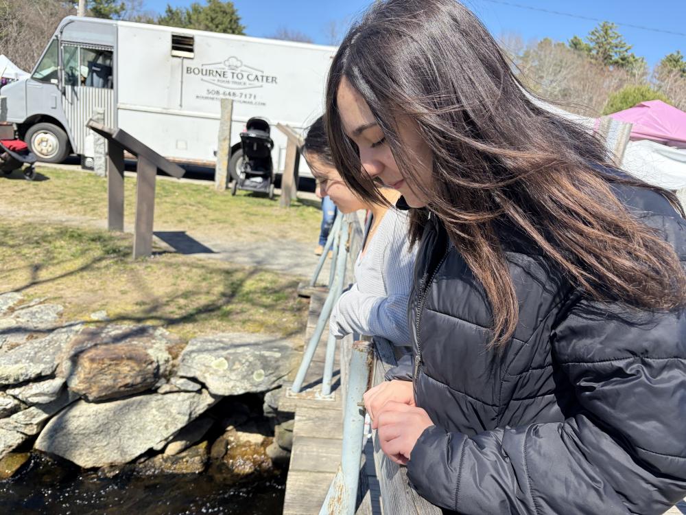 Some visitors also experienced a view of the herring up close when several fish wardens scooped up some of the fish to be transferred to a more open location a few yards away. Fish wardens are part of the Middleboro-Lakeville Herring Fishery Commission and help ensure the safety of the herring.