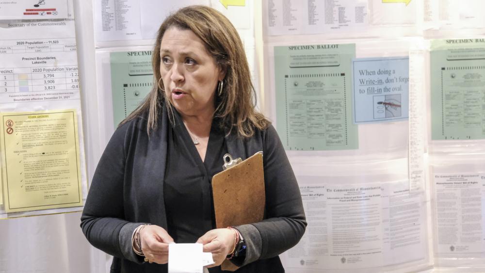 Town Clerk Lillian Drane reads off the unofficial votes counted at the Loon Pond Lodge polling station. Photo by Sam TuckerLAKEVILLE — Voters took to the polls on Monday during the annual Town Election and elected Kristen Howard and Evagelia “Lia” Fabian to serve on the Select Board, according to the Town Clerk’s official results.