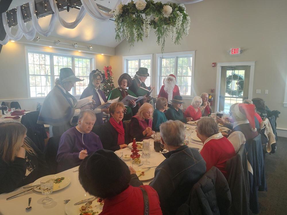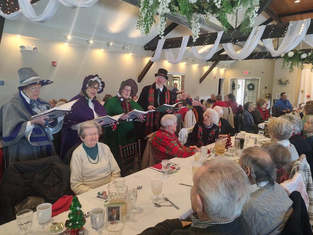 During the festivities at Loon Pond Lodge at Ted Williams Camp, the Loon Pond Caterers served a buffet, and a four part acapella group — the Merry Christmas Victorian Carolers of Jazz Up Your Party — brought their festive melodies to each table throughout lunch.