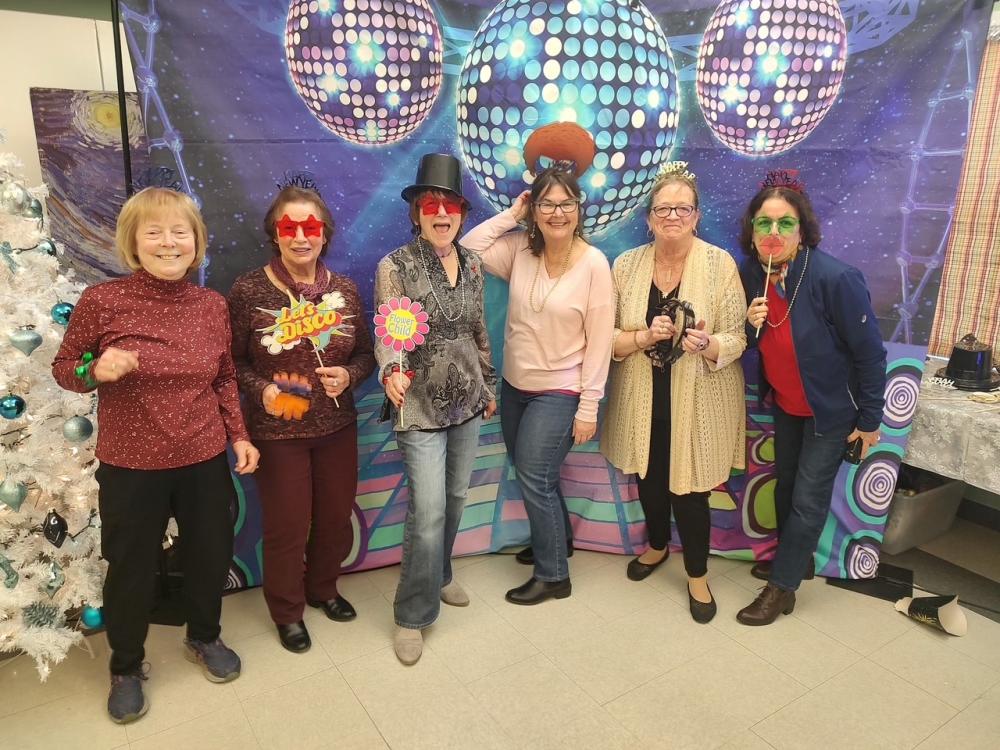 Left to right: Sue Esposito, Cheryl Champagne, Rosemary Duclos, Cindy Sousa, Casslyn Allen and Cidalia Sakalaukus pose in their New Year's attire.