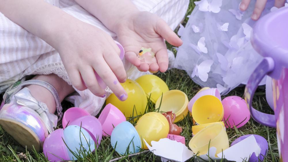 Desiree Cummings, 7, opens an egg to find small prizes.