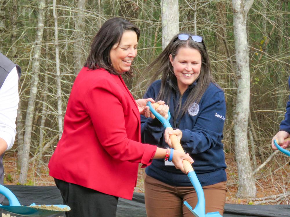 Driscoll (left) and Select Board member Teresa Farley break ground on the project together.