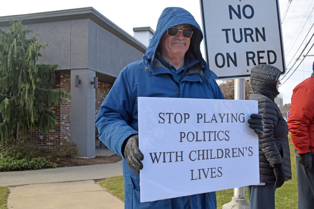 Protesters gathered at the intersection of routes 28 and 105.