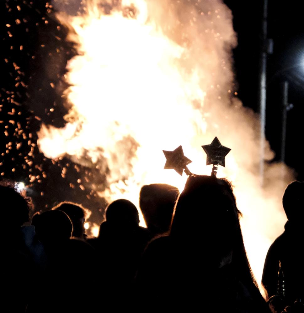 Starting the event off with a bonfire that was fed with dozens of Christmas trees, revelers watched as sparks glittered through the sky. The warm roar of the fire was felt over 20-feet away from the towering flames.