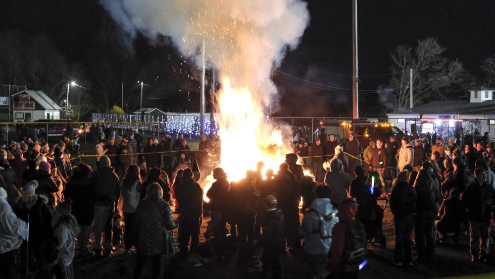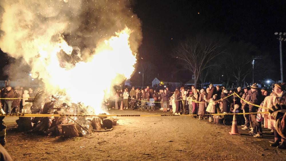 A bonfire roars at the Middleboro New Year's Eve celebration held at Battis Field, Wednesday, Dec. 31. Photos by Sam Tucker