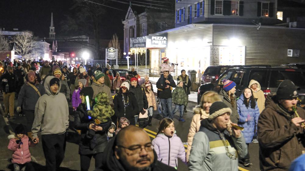 Before long, instruments of every make and size were tooted on, played and drummed during the “noise parade,” a short marching parade where revelers made as much noise as they could as they walked around the block on Main Street.