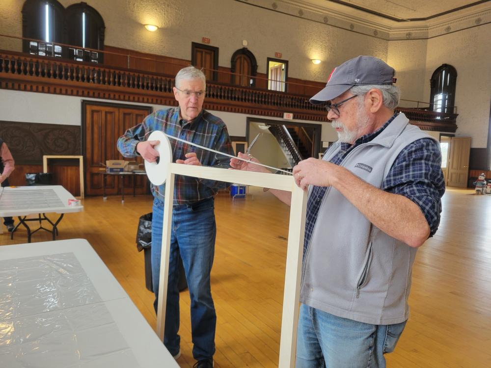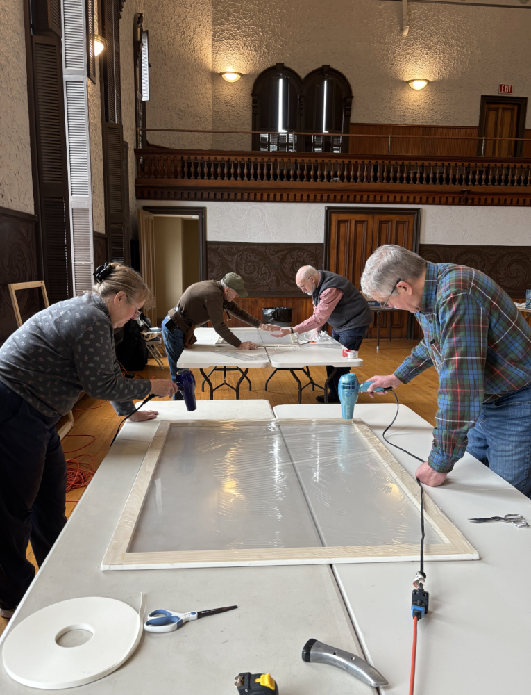 Volunteers construct wooden-framed window inserts that will be installed in 10 Middleboro homes as part of a new winter heating assistance program. Photos source: Sustainable Middleboro