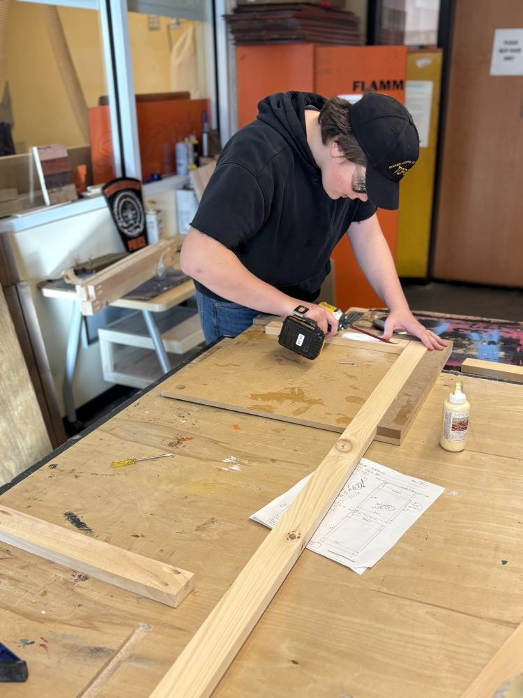 A Middleboro High School student constructs a window insert in the high school's Innovation Lab. Photo by Tony Chiuppi.