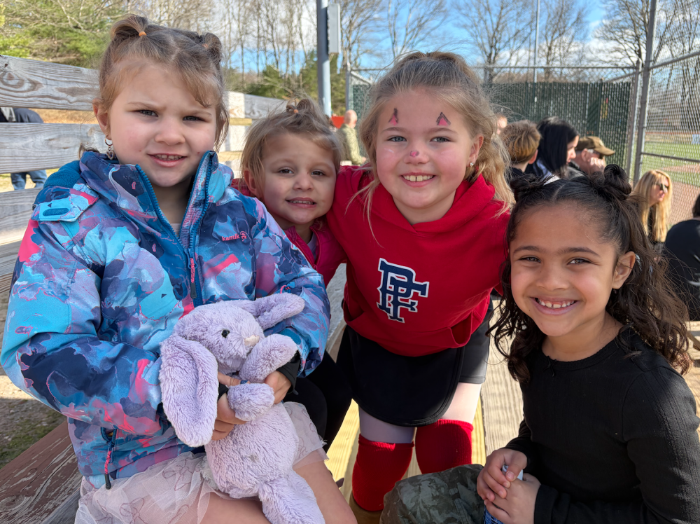From left, Kensley Gaudet, Kylie Gaudet, Hayden Lovstad and Aria Hardaway take a break on the bleachers. Photo by Sandy Quadros Bowles