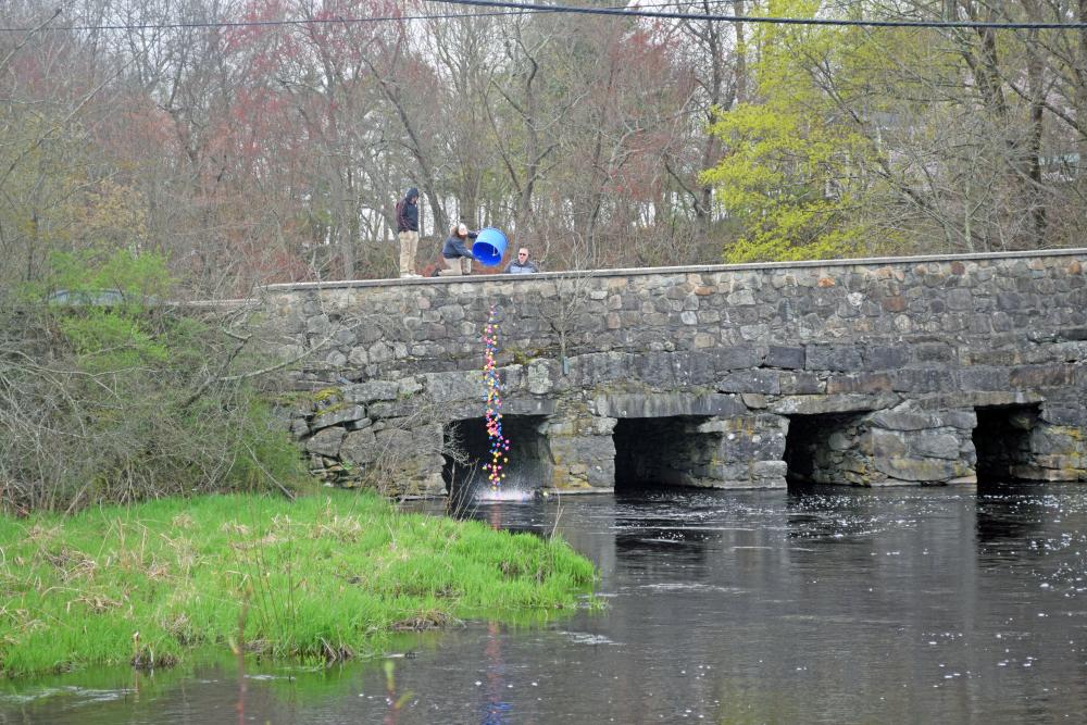 The Park Department dumps the ducks into the river.