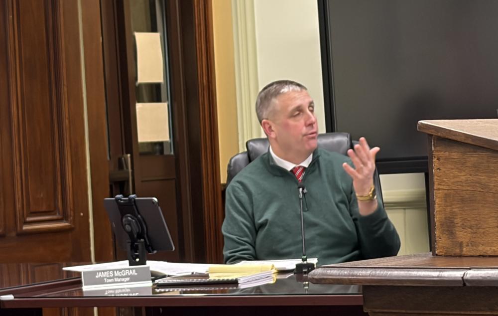 That figure represents an increase of slightly more than 1 percent over the current spending, which is the lowest hike in five years, Town Manager James McGrail said during the budget presentation to the Select Board and Finance Committee at their Feb . 2 joint meeting.