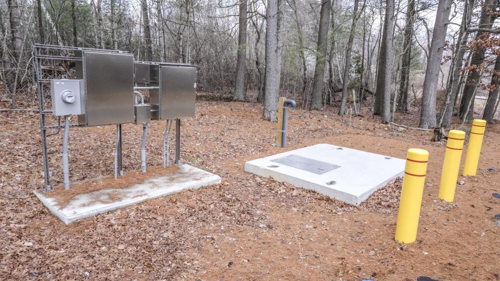 A cap to water piping is seen near the new water line around 0 Plymouth St. in Middleboro. The water line will supply Bridgewater while the neighboring town fixes contamination issues with their own supply. Photos by Sam Tucker